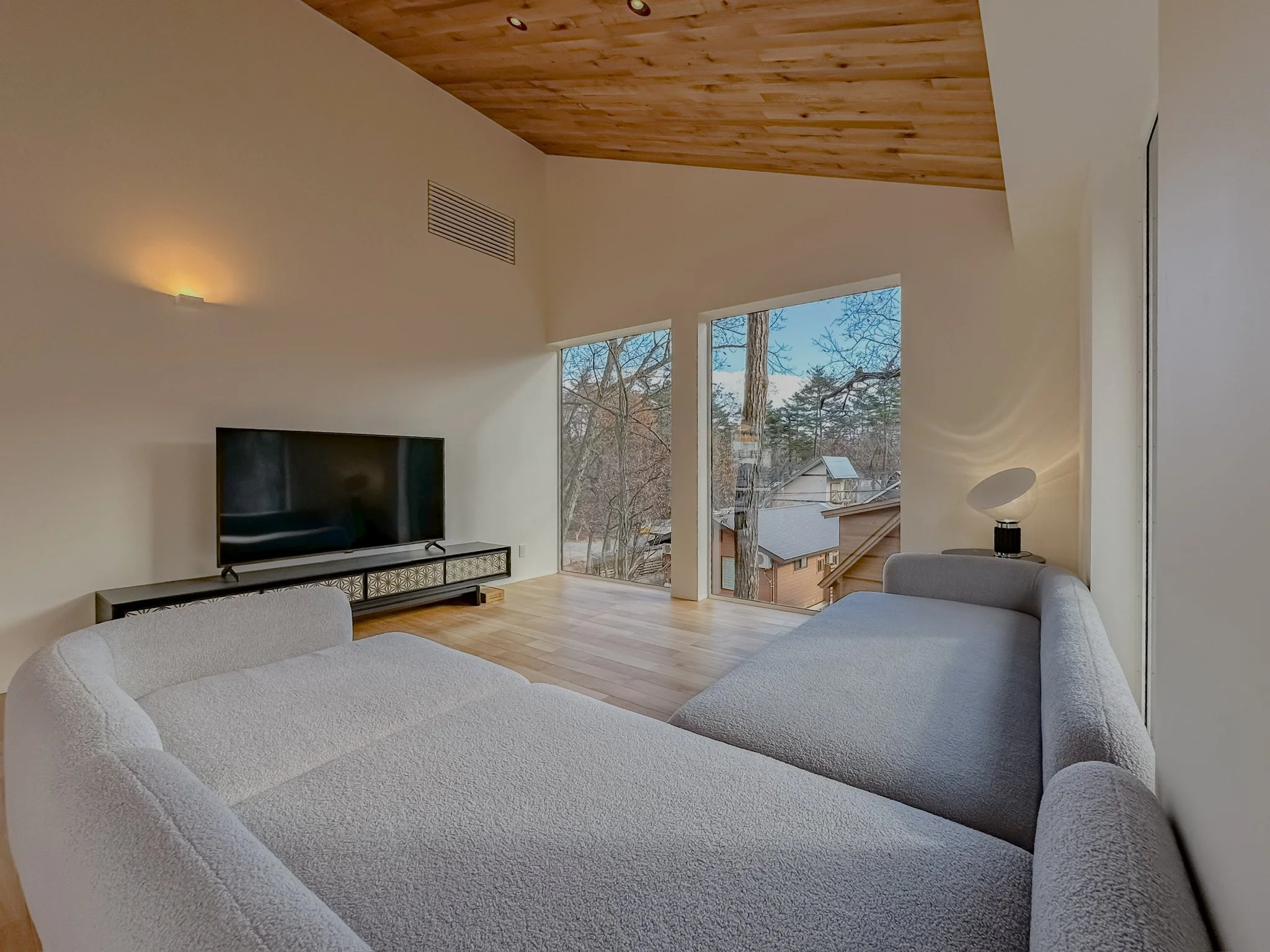 The heart of Chalet Hikaru is its expansive open-plan living space, designed to showcase stunning mountain views. Bathed in natural light, it creates a warm and inviting atmosphere throughout the day. Equipped with immersive sound systems and thoughtfully designed Japanese–Scandinavian interiors, the living area is the perfect setting for both lively gatherings and quiet moments of relaxation.