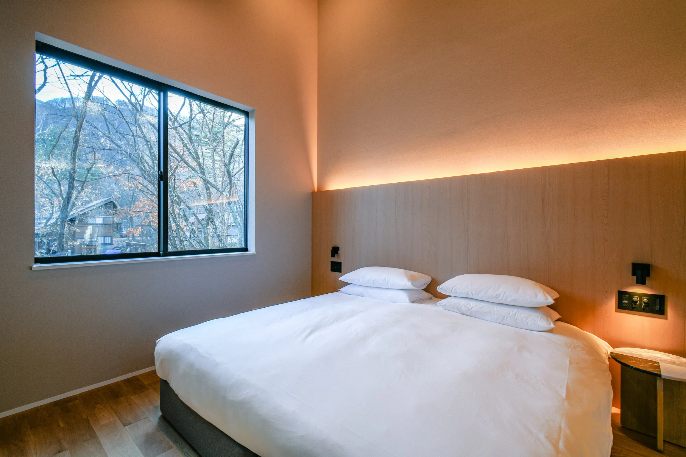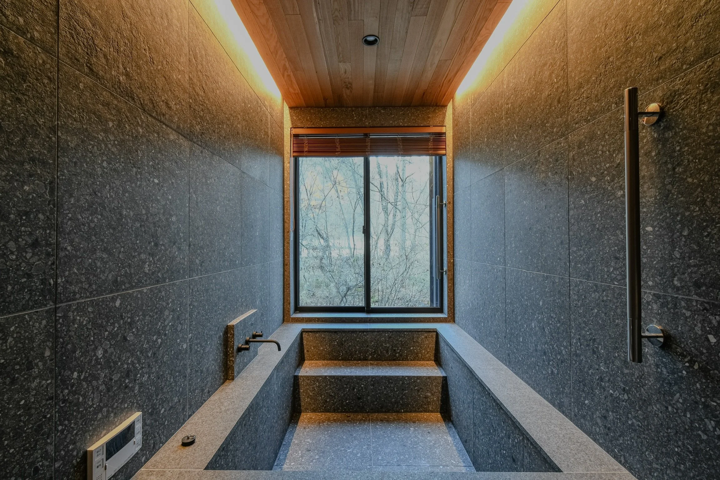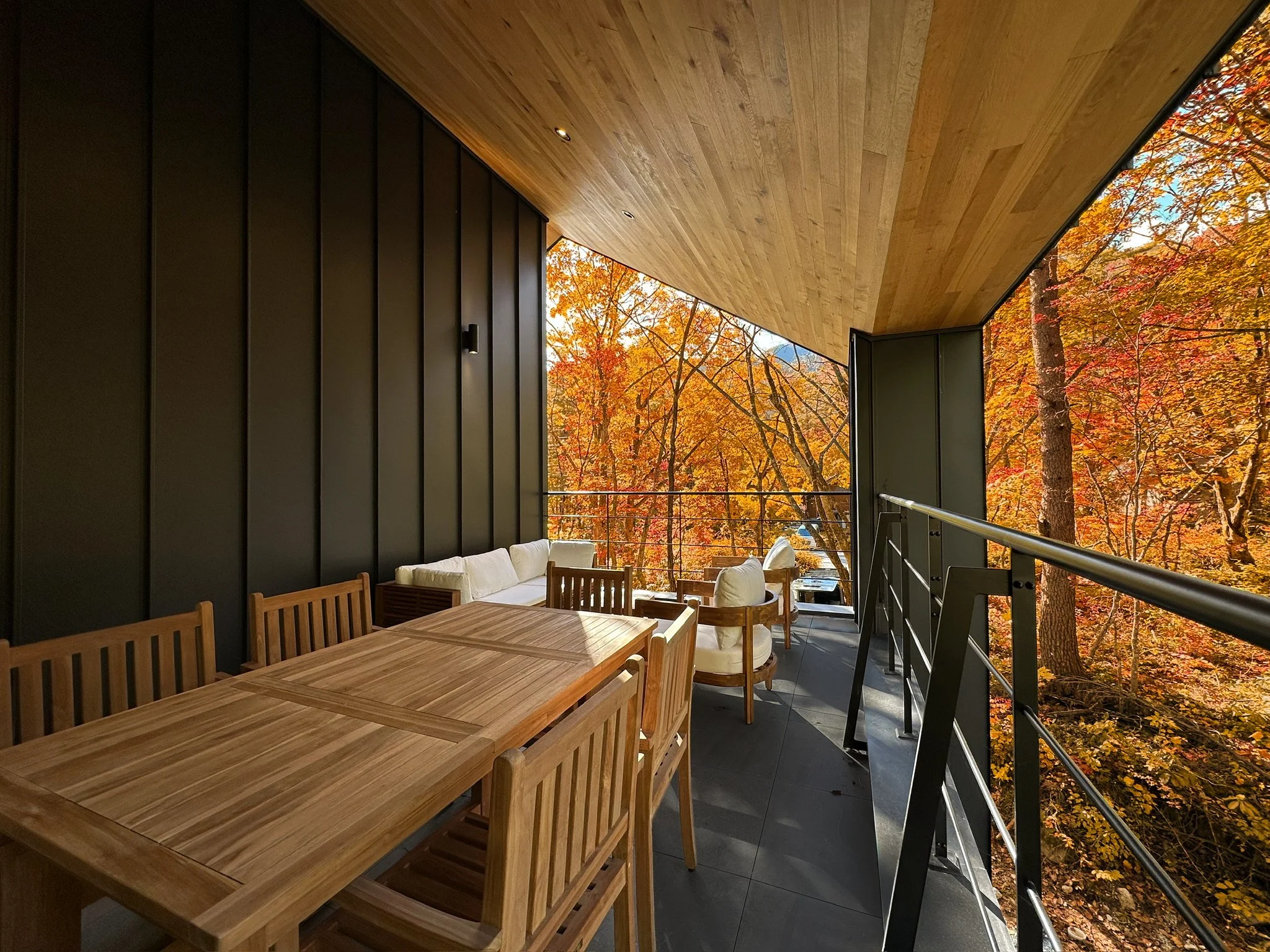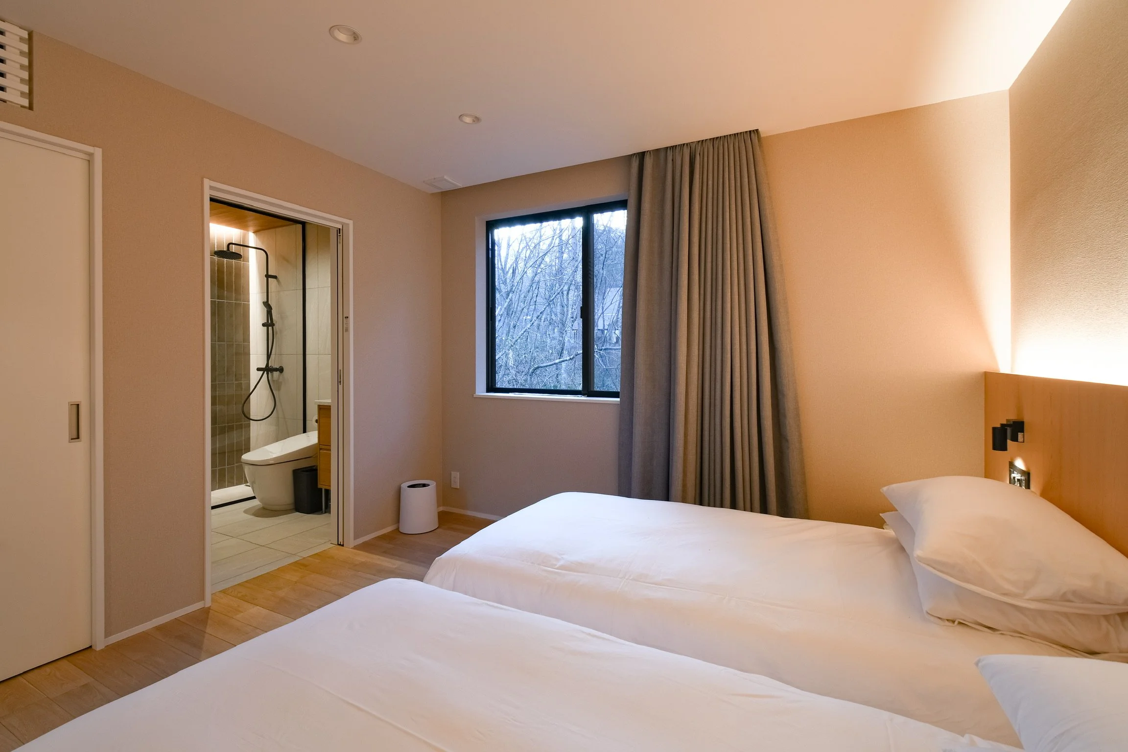 Fully designed by Hakuba Resort Homes, Yugen is a luxury chalet with four spacious bedrooms, each having its own sleek ensuite. A large onsen-style indoor bath opening to a private deck. Floor-to-ceiling windows framing verdant views of the forest and the snow-capped peaks you came here to ski. Light-filled, serene, and deliberately secluded – this is where powder days end with private onsen soaks and complete escape.