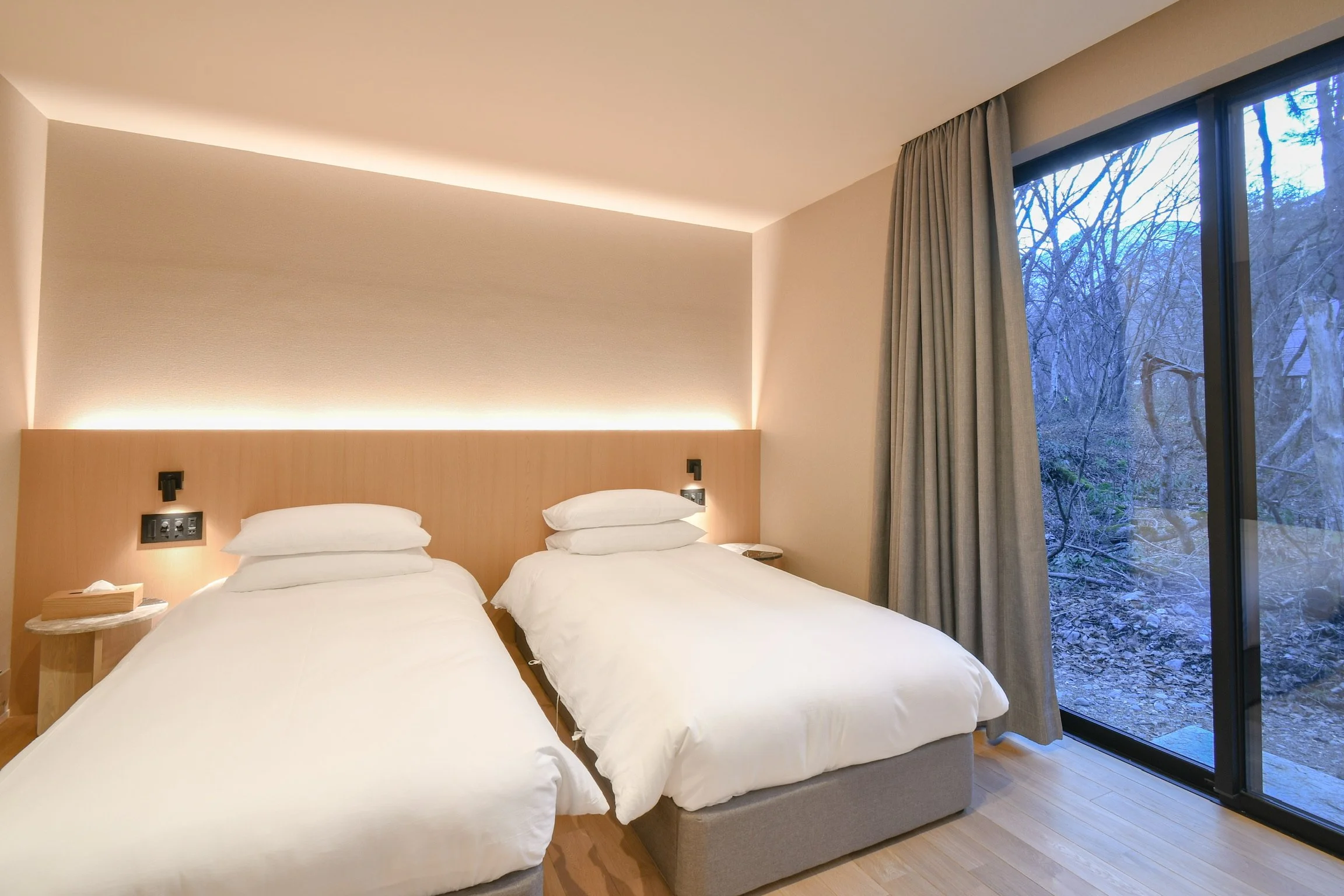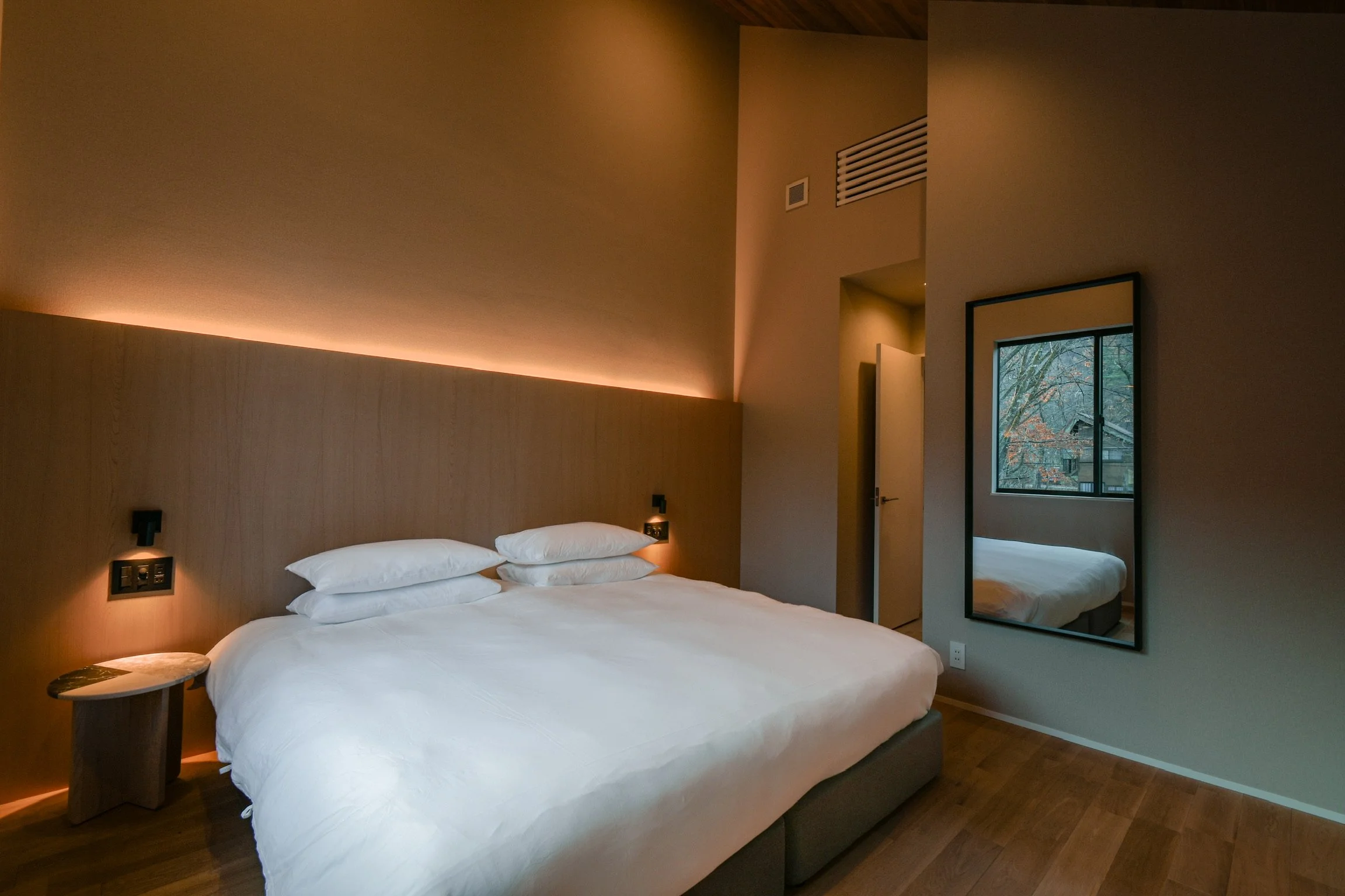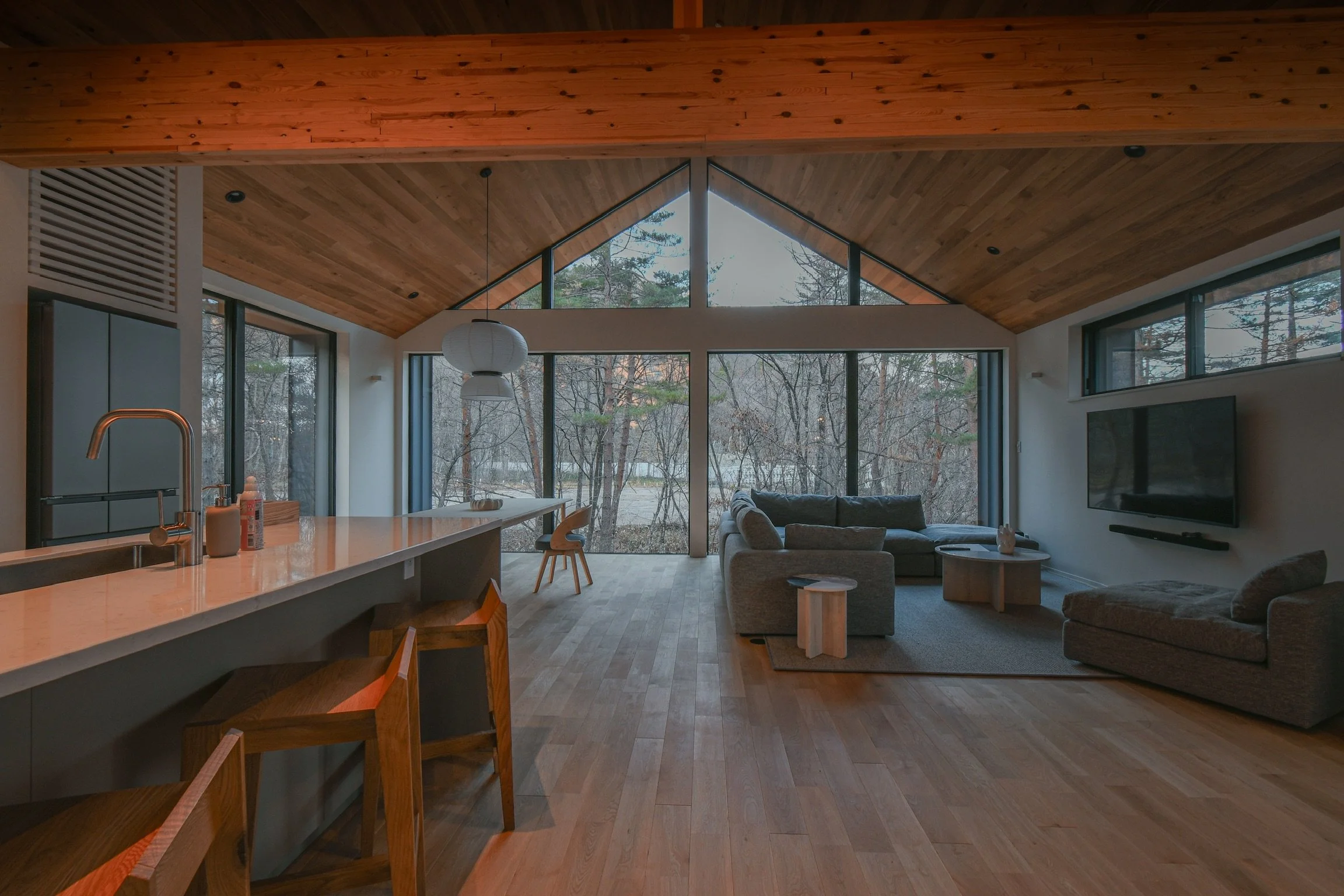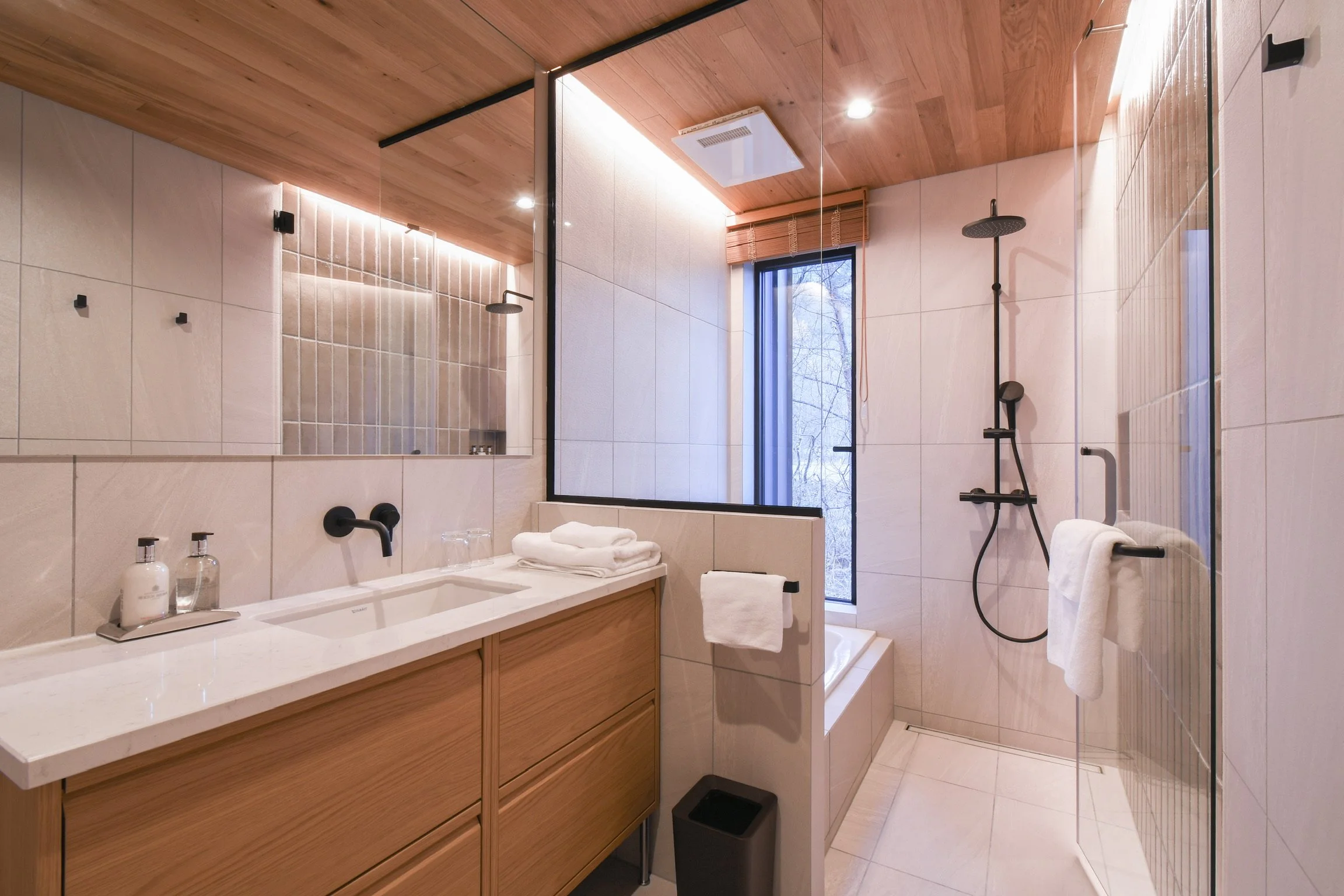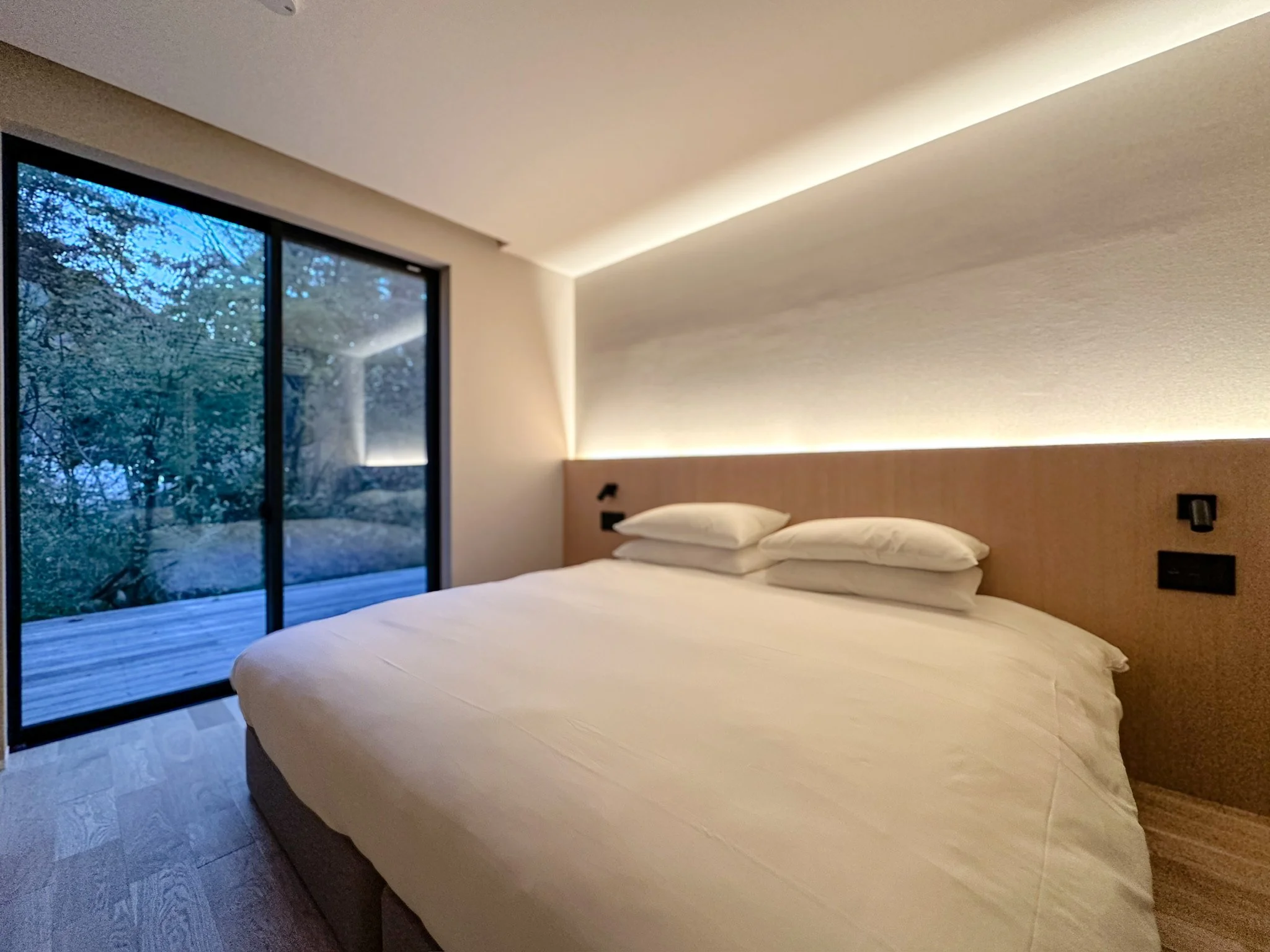 Fully designed by Hakuba Resort Homes, Yugen is a luxury chalet with four spacious bedrooms, each having its own sleek ensuite. A large onsen-style indoor bath opening to a private deck. Floor-to-ceiling windows framing verdant views of the forest and the snow-capped peaks you came here to ski. Light-filled, serene, and deliberately secluded – this is where powder days end with private onsen soaks and complete escape.